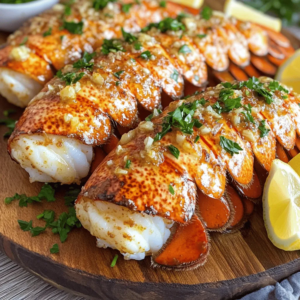 2. Garnishing tips: Garnish your lobster tails with fresh parsley sprigs and lemon wedges. This adds a pop of color. Drizzle any leftover garlic butter over the lobster just before serving to enhance the flavor. Enjoy your delicious creation!