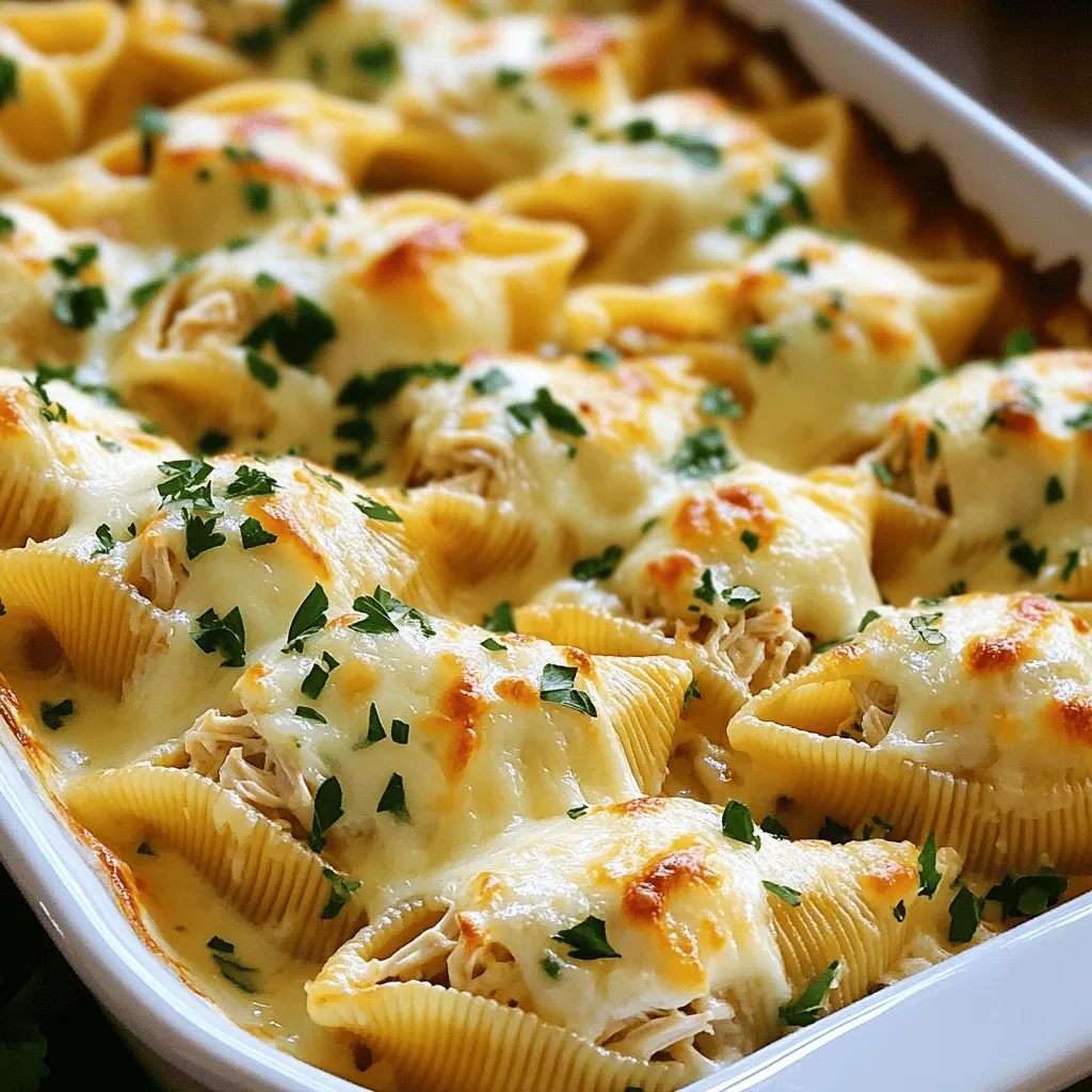 for all the details! {{image_4}} You can switch up the protein in Chicken Alfredo Stuffed Shells easily. Ground turkey or beef works well. Both give a rich taste and fit well in the shells. If you want a lighter option, ground chicken is great too. For vegetarian options, you can use mushrooms or spinach. They add flavor and nutrients without meat. Tofu is also a good choice. It soaks up the sauce nicely and adds protein. You can play with the sauce to create different flavors. Try adding garlic or herbs to the Alfredo sauce. This gives it a fresh taste. You might also enjoy a white wine cream sauce for a twist. Adding roasted vegetables to the sauce works wonders too. Think peppers, zucchini, or even spinach. This makes the dish colorful and healthy. Cheese can change the whole vibe of your dish. You can mix in different cheeses like fontina or gouda. These cheeses melt beautifully and add a new flavor. If you want a lighter option, try part-skim mozzarella. For those who avoid dairy, vegan cheese is a great alternative. Look for brands made from nuts or soy. They can also melt well and taste great. To store Chicken Alfredo stuffed shells in the fridge, let them cool first. Place them in an airtight container. Keep them in the fridge for up to three days. For best freshness, cover the top with a bit of extra Alfredo sauce. This keeps the shells moist and tasty. To freeze stuffed shells, first let them cool completely. Then, place them in a single layer on a baking sheet. Freeze until solid, about two hours. After that, pack them in a freezer-safe container or bag. They can last for up to three months in the freezer. When you’re ready to eat, thaw them in the fridge overnight. Reheat in the oven at 350°F (175°C) for about 25 minutes. Cover with foil to avoid drying out. Enjoy your delicious meal again! Can I use non-dairy substitutes? Yes, you can! Use non-dairy cheese and a plant-based Alfredo sauce. This keeps the dish creamy without dairy. How long does it take to cook from frozen? If you cook from frozen, add about 15 to 20 minutes to the baking time. This ensures everything heats through well. What can I serve with Chicken Alfredo Stuffed Shells? These shells pair great with a fresh green salad or warm garlic bread. Both options add balance to your meal. Why are my shells falling apart? Overcooking the pasta shells can cause this. Make sure to cook them just until al dente. How can I prevent the filling from spilling out? Don’t overfill the shells. Fill them just enough, but leave some space at the top. This helps keep the filling secure. What's the best way to know when it's fully cooked? Check if the cheese on top is bubbly and golden brown. You can also insert a knife to see if it’s hot inside. Can I make this dish ahead of time? Absolutely! You can prepare the shells and store them in the fridge. Just bake them when you're ready to eat. For details, check the Full Recipe. In this article, we explored how to make Chicken Alfredo Stuffed Shells. We covered the key ingredients, including pasta shells, chicken, and cheeses. I shared clear steps for preparation, filling, and baking. We also discussed tips for perfecting your dish and variations to suit your taste. Remember, cooking is fun and can be creative. Don't hesitate to try new flavors or ingredients. Enjoy your delicious stuffed shells and share them with friends and family!](https://joymealplan.com/wp-content/uploads/2025/07/ca290995-1373-40bc-abd5-a22e15d03aa0.webp)