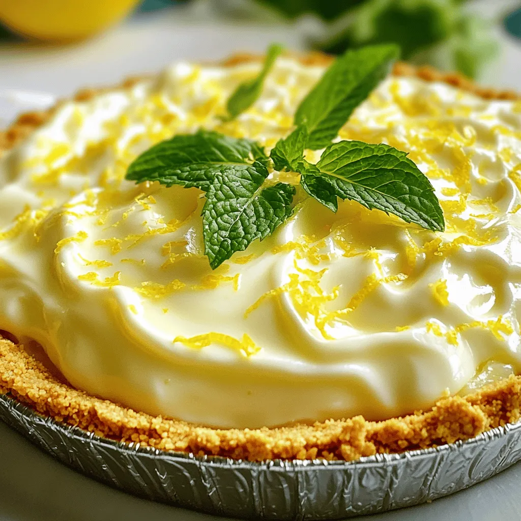 The ingredients for No Bake Lemon Icebox Pie are simple yet flavorful. You need graham cracker crumbs for the crust, which adds a nice crunch. Sugar sweetens the pie perfectly. The melted butter helps bind the crumbs together. Sweetened condensed milk gives the filling a rich, creamy texture. Fresh lemon juice brightens the pie, while lemon zest enhances the flavor. Heavy whipping cream adds fluffiness, and powdered sugar balances the sweetness. For a touch of color, garnish with mint leaves.
