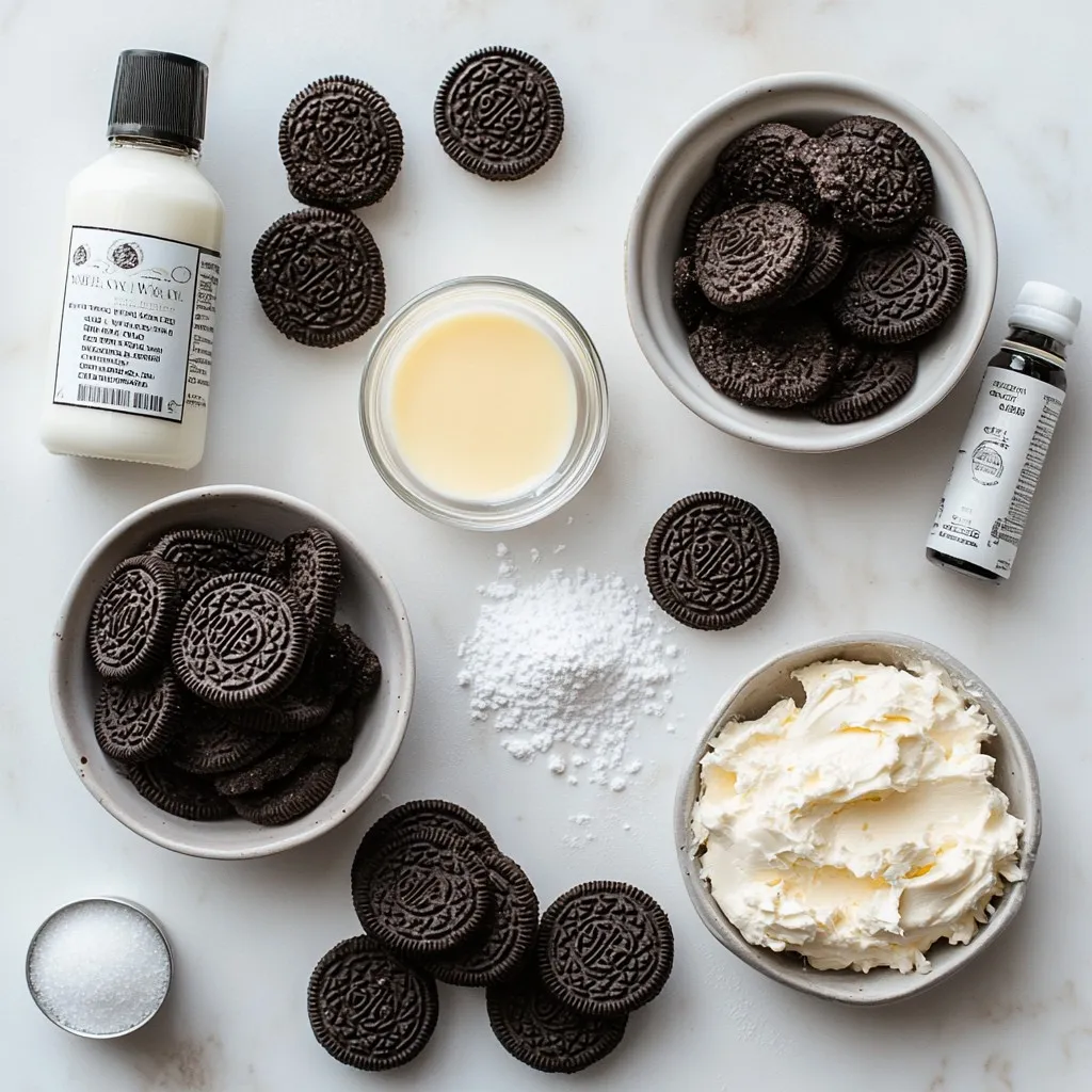 When making No-Bake Oreo Cheesecake Bars, you need simple ingredients. Here’s the list: