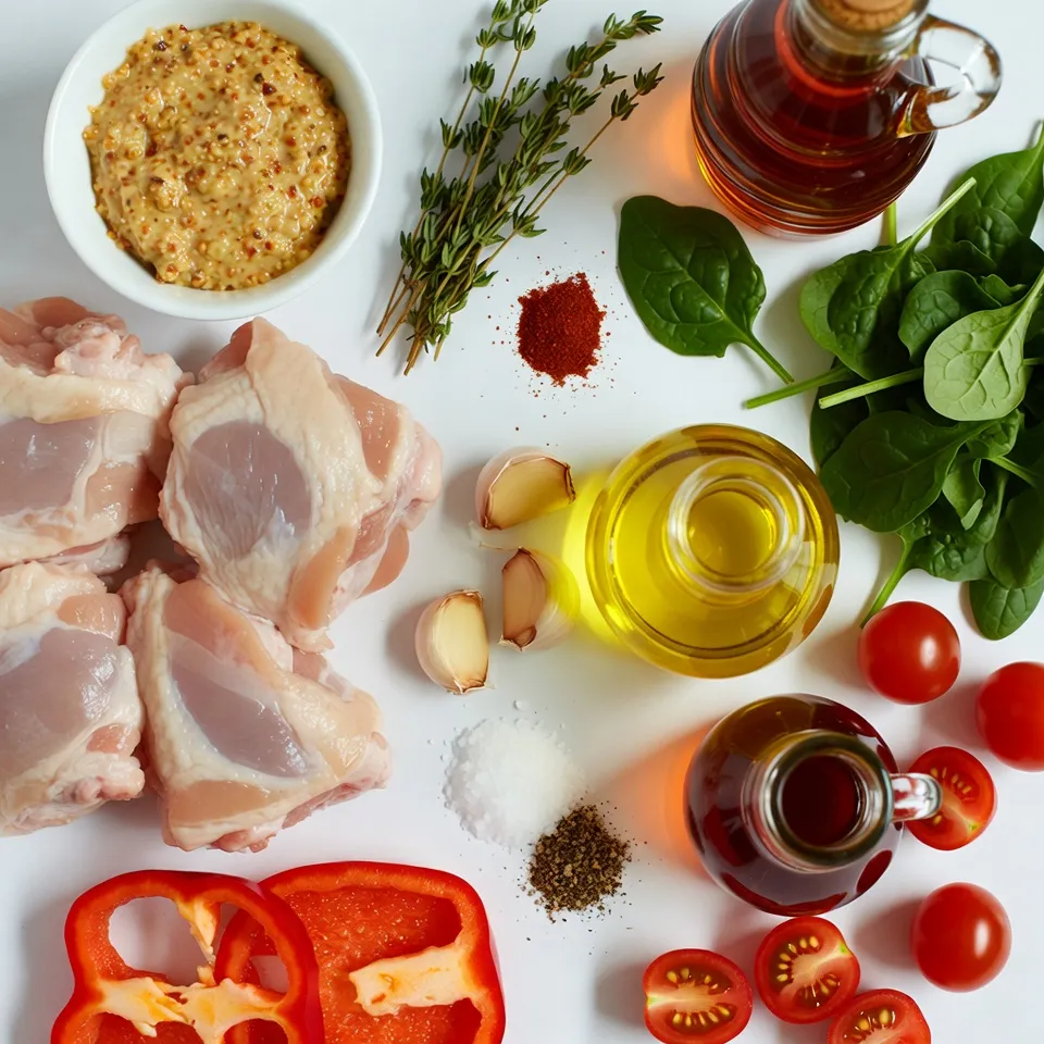 The main ingredients in this dish are simple yet flavorful. The chicken thighs provide a juicy base, while Dijon mustard and pure maple syrup create a sweet and tangy glaze.