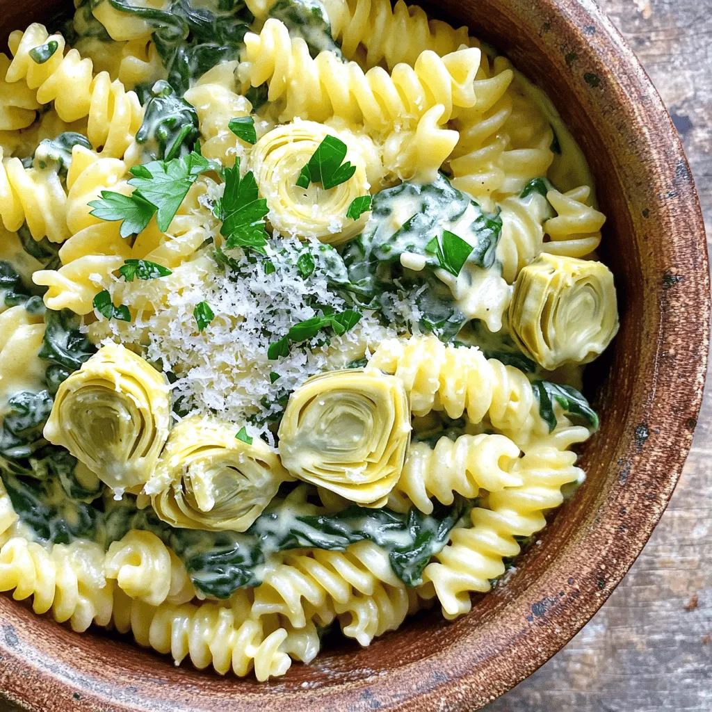 One Pot Creamy Spinach Artichoke Pasta Delight