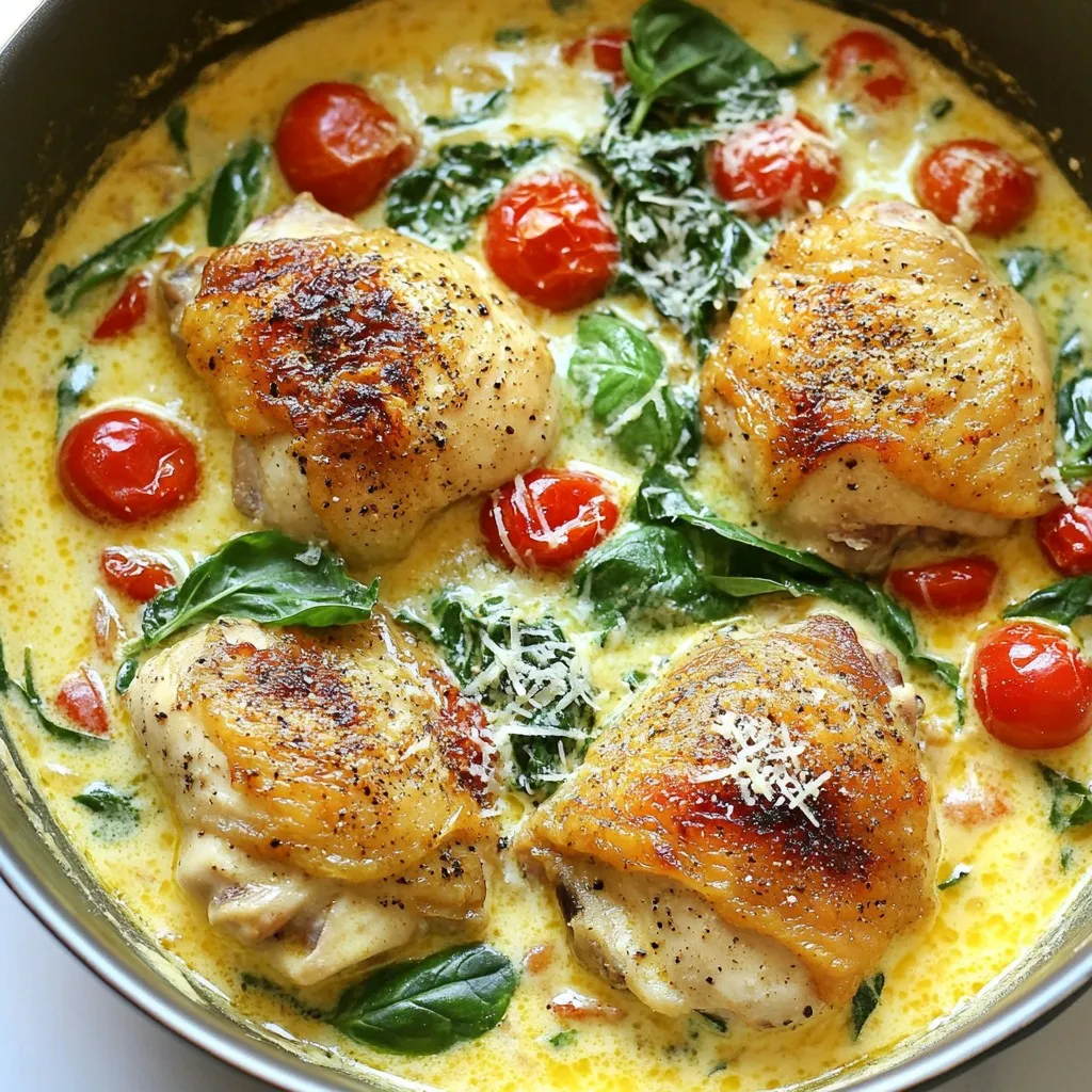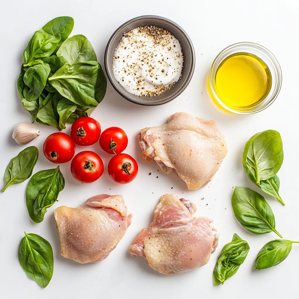The main ingredients of this dish are simple yet full of flavor. Chicken thighs provide juicy meat that stays tender during cooking. Olive oil coats the chicken and helps it brown nicely. Seasonings like salt and pepper enhance the chicken’s taste. Minced garlic adds a lovely aroma, while cherry tomatoes and fresh spinach bring color and nutrients. The cream creates a rich sauce that makes this dish special.