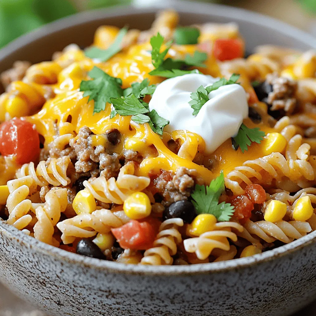 Pasta type matters too. If you need gluten-free options, use rice pasta or quinoa pasta. These work well and keep the dish safe for gluten-sensitive folks. For seasoning, consider low-sodium taco seasoning to cut back on salt. If you like heat, try spicy taco seasoning or add hot sauce for an extra kick.