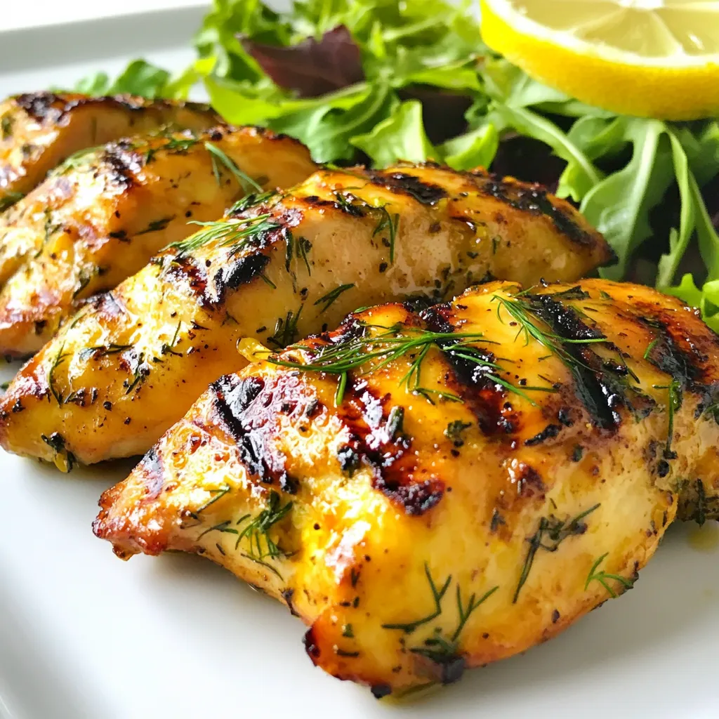 - 4 boneless, skinless chicken breasts - 2 tablespoons extra virgin olive oil - Juice of 2 fresh lemons - Zest of 1 lemon - 3 cloves of garlic, finely minced - 2 tablespoons fresh dill, finely chopped (or 1 tablespoon dried dill for convenience) - 1 teaspoon sea salt - 1/2 teaspoon freshly ground black pepper - 1 teaspoon smoked paprika (optional, for an extra layer of flavor) - Mixing bowl - Whisk - Grilling surface or non-stick skillet - Plastic wrap or resealable plastic bag Gathering the right ingredients is key to a great meal. For this Paleo Lemon Dill Chicken, start with fresh and high-quality items. The chicken should be boneless and skinless for easy cooking. Use extra virgin olive oil for healthy fat. Fresh lemons add a zesty kick. The juice and zest work together to brighten up the dish. Garlic gives a fragrant base, while dill brings a unique flavor. You can use fresh or dried dill based on what you have. Season your chicken with sea salt and black pepper. This simple seasoning enhances the taste. Smoked paprika is optional but adds a nice depth if you want it. For tools, a mixing bowl and whisk make preparing the marinade easy. A grilling surface or non-stick skillet is best for cooking the chicken. Finally, use plastic wrap or a resealable bag to marinate the chicken. This helps the flavors soak in well. With these ingredients and tools, you're set for a delicious meal! {{ingredient_image_2}} To start, you need to prepare the marinade. In a large bowl, whisk together: - 2 tablespoons extra virgin olive oil - Juice of 2 fresh lemons - Zest of 1 lemon - 3 cloves garlic, finely minced - 2 tablespoons fresh dill, finely chopped - 1 teaspoon sea salt - 1/2 teaspoon black pepper - 1 teaspoon smoked paprika (optional) Mix until smooth and fragrant. Next, submerge the chicken breasts in the marinade. Make sure each piece is coated well. Cover the bowl with plastic wrap or place the chicken in a resealable bag. Pop it in the fridge. Marinate for at least 30 minutes. For best results, aim for 2-4 hours. This lets the flavors soak in. When it’s time to cook, preheat your grill or skillet over medium-high heat. If you use a grill, lightly oil the grates to keep the chicken from sticking. Take the chicken out of the marinade. Let any extra marinade drip off. Keep the reserved marinade for basting later. Place the chicken on the hot grill or skillet. Cook each side for about 6-7 minutes. Check for grill marks and an internal temperature of 165°F (75°C). This means your chicken is safe to eat. In the last two minutes of cooking, brush a bit of the reserved marinade over the chicken. This enhances the flavor and keeps it juicy. Once the chicken is cooked, remove it from the heat. Let it rest on a cutting board for about 5 minutes. Resting helps the juices go back into the meat. This step keeps your chicken moist and full of flavor. For the best flavor, marinate the chicken for 2 to 4 hours. This time lets the marinade sink in. If you're in a hurry, 30 minutes is still okay, but longer is better. When it comes to dill, fresh dill gives a bright taste. It has a stronger flavor than dried dill. Use 2 tablespoons of fresh dill if you can. If you only have dried dill, use 1 tablespoon. It works too, but the taste will be different. You can cook this chicken in a few ways. Grilling gives it a smoky flavor and nice grill marks. Preheat your grill and oil the grates to avoid sticking. If you don’t have a grill, use a non-stick skillet. Preheat it on medium-high heat. Cook the chicken for about 6 to 7 minutes on each side. Both methods will make your chicken juicy and tasty. If you want to bake the chicken, preheat your oven to 375°F (190°C). Place the marinated chicken on a baking sheet. Bake for about 25 to 30 minutes or until it reaches an internal temperature of 165°F (75°C). To make your dish stand out, plate the chicken neatly. Slice it and arrange it on a large platter. Garnish with lemon wedges and fresh dill sprigs. This adds color and makes it look fresh. Pair the chicken with colorful vegetables like steamed broccoli or a crisp salad. These sides enhance the dish's look and taste. They also keep your meal healthy and vibrant. Pro Tips Marinating Time: For the best flavor, aim to marinate the chicken for 2-4 hours. This allows the marinade to penetrate deeply, enhancing the taste. Grilling Technique: When grilling, ensure your grill is preheated and the grates are lightly oiled to prevent sticking and achieve beautiful grill marks. Resting Period: Don’t skip the resting period after cooking. Let the chicken rest for about 5 minutes to allow juices to redistribute, keeping it moist. Flavor Boost: Basting the chicken with reserved marinade in the final moments of cooking adds an extra layer of flavor and keeps it juicy. {{image_4}} You can change the herbs in this recipe for new tastes. Fresh parsley works well with lemon and chicken. Rosemary adds a fragrant touch. For a spicy kick, try fresh basil or even cilantro. You can adjust the flavor with spices too. For example, add a pinch of chili flakes for heat. Alternatively, a dash of cumin adds earthiness. Experiment and find what you love! This recipe is easy to adapt for different diets. To make it dairy-free, just skip any cheese or creamy sauces. You can also use coconut milk as a base for a creamy sauce. If you want to make it nut-free, avoid nut oils and stick to olive oil. Adding vegetables is a great way to boost nutrition. Try grilling zucchini, bell peppers, or asparagus alongside the chicken. These veggies pair nicely with lemon and dill. You’ll create a colorful, tasty meal everyone can enjoy! After enjoying your Paleo Lemon Dill Chicken, you may have some leftovers. Here’s how to store them: - Refrigeration: Place the cooked chicken in an airtight container. It will stay fresh for up to 3 days in the fridge. Make sure the chicken cools down before sealing. - Freezing: For longer storage, freeze the chicken. Wrap