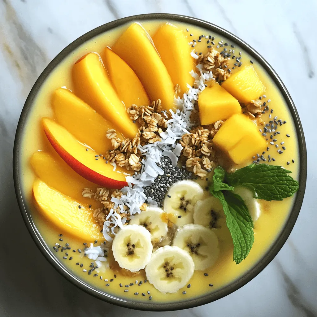 You can add a fun twist to your Peach Mango Smoothie Bowl. Try mixing in pineapple or coconut. Both fruits bring a sweet and tangy flavor. They also add a tropical vibe that brightens your bowl. You might want to experiment with other tropical fruits too. Kiwi, passionfruit, or even papaya can change the taste. Each fruit adds its own charm. Don’t be afraid to mix and match!