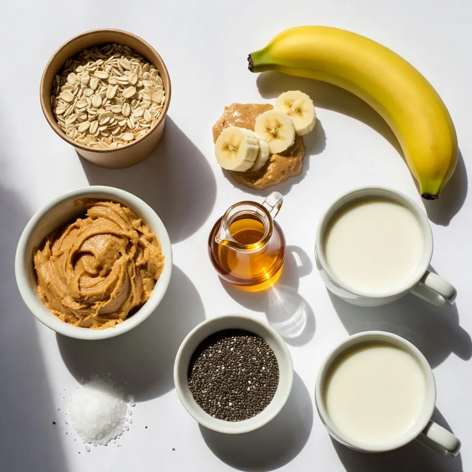Main Ingredients for Peanut Butter Banana Overnight Oats