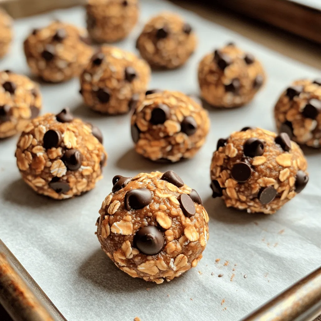 These ingredients come together to create a tasty and healthy snack. The oats give a chewy base. The peanut butter adds creaminess and protein. Honey or maple syrup sweetens the bites. Mini chocolate chips provide that sweet surprise in every bite. Ground flaxseed boosts nutrition with fiber and omega-3s. Vanilla extract adds a lovely aroma, while cinnamon brings warmth. Finally, a pinch of salt brings out all the flavors.