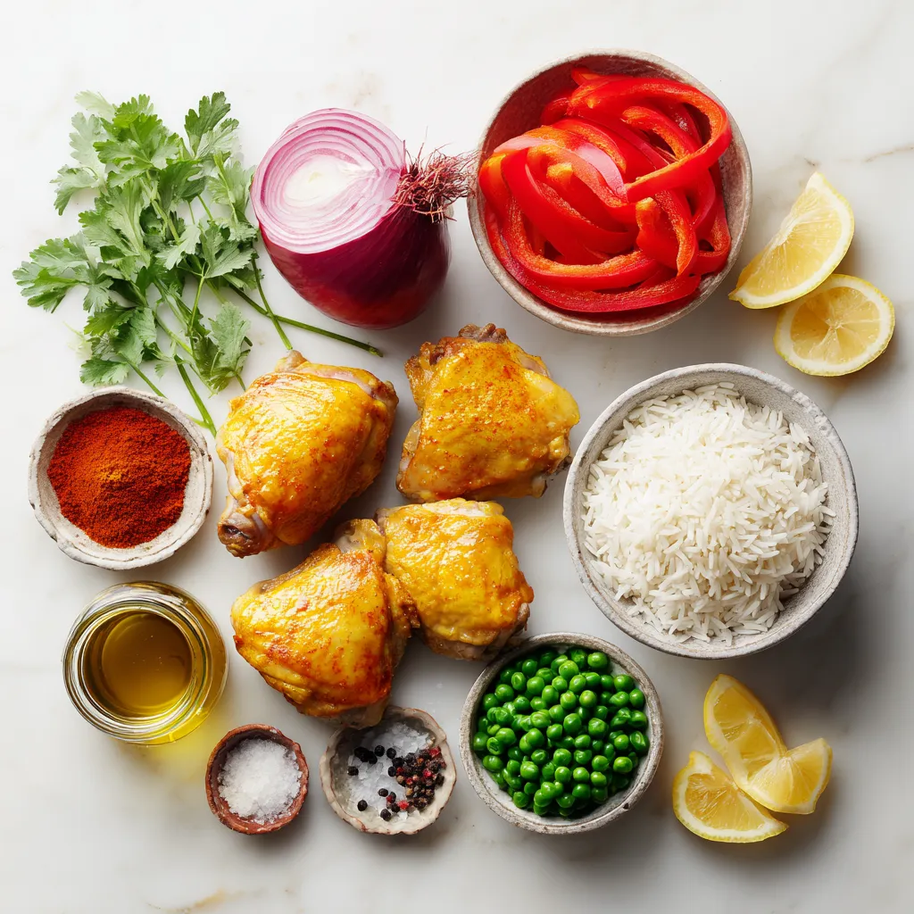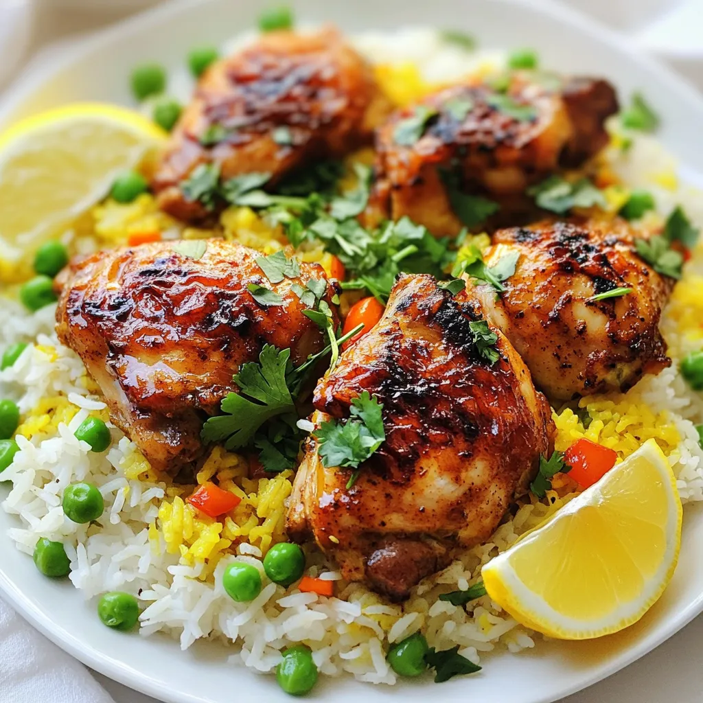 - Serve the chicken and rice on a beautiful platter, garnished generously with fresh cilantro leaves. Arrange lemon wedges around the dish for a bright, zesty touch.