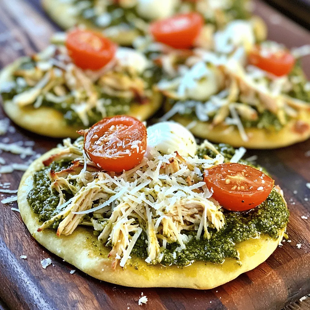 Soggy flatbreads can ruin your meal. To prevent this, make sure to oil them lightly and spread the pesto evenly. Also, don’t overload the toppings. Less is more! For cheese, use fresh mozzarella. It melts beautifully. Ensure that it covers the chicken well for even melting.