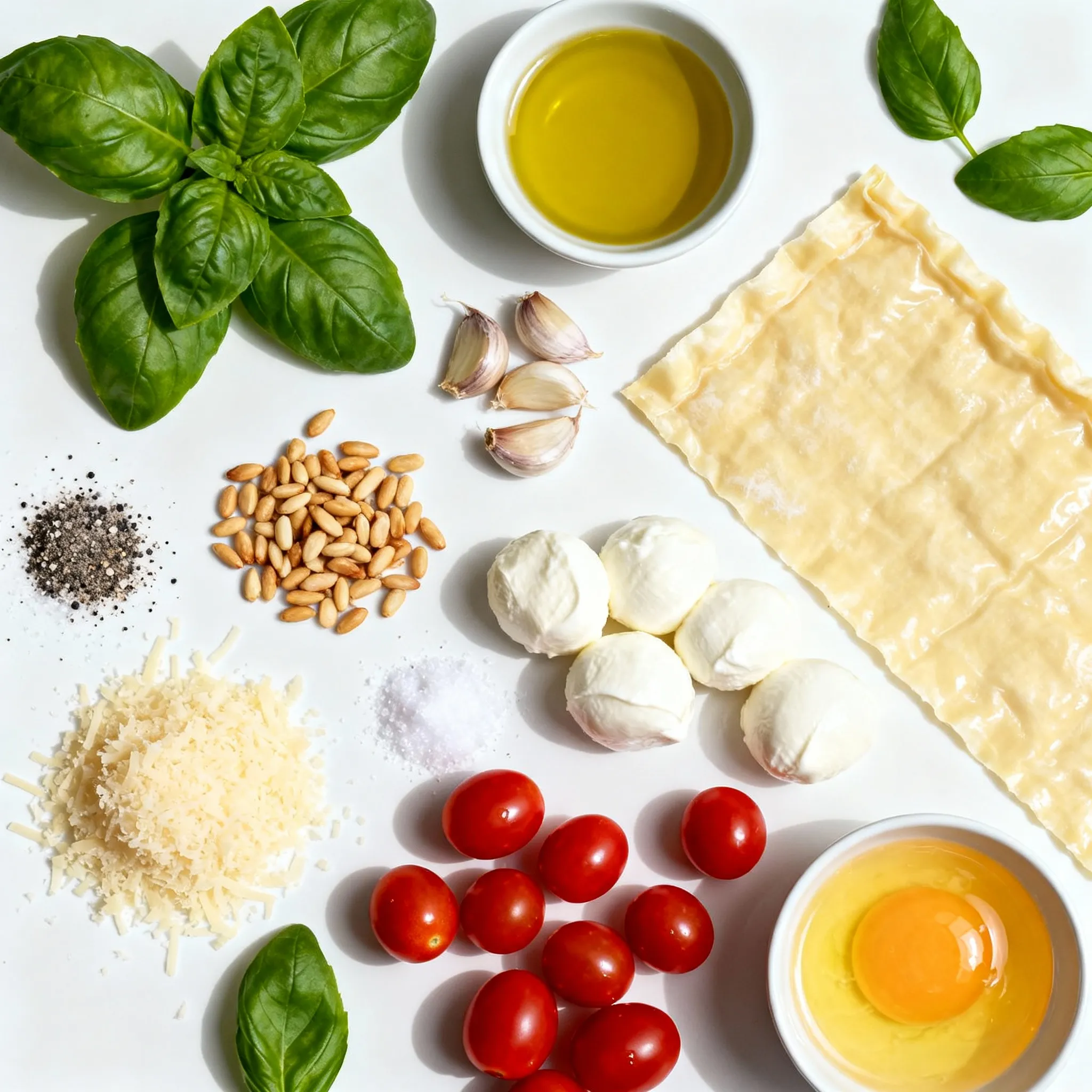 - Prepare the Pesto: In a food processor, combine the fresh basil leaves, extra-virgin olive oil, minced garlic, lightly toasted pine nuts, and grated Parmesan cheese. Pulse until the mixture is smooth and well blended. Taste and season with salt and pepper as desired. Set the pesto aside to allow the flavors to meld.