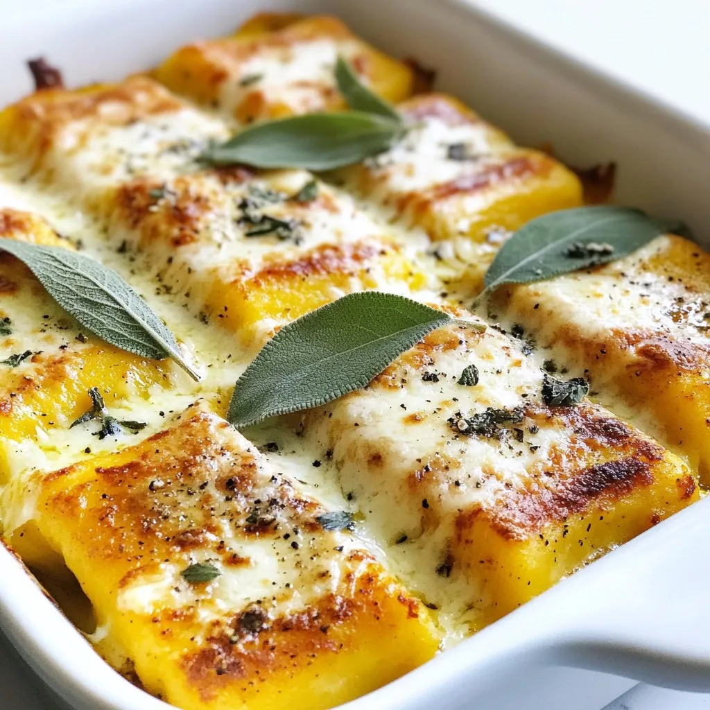 - 2 cups pumpkin puree (canned or homemade) - 1 cup ricotta cheese - 2 cups all-purpose flour, plus extra for dusting - 1 large egg The heart of this pumpkin gnocchi bake lies in its main ingredients. Pumpkin puree gives the dish its rich, sweet flavor and a lovely orange hue. Ricotta cheese adds creaminess, making each bite soft and delightful. For the structure, we use all-purpose flour. This flour helps bind the ingredients together, creating a dough that holds its shape. The egg brings it all together, adding moisture and richness. You can make pumpkin puree at home or use canned for convenience. - 1 cup grated Parmesan cheese, divided - 1 cup shredded mozzarella cheese Cheese is key to making this dish even more comforting. Parmesan cheese offers a salty, nutty flavor. We use it twice in the bake for layers of cheesy goodness. Mozzarella cheese adds a stretchy, gooey texture that melts beautifully on top. Using a mix of these cheeses elevates the taste and creates a delightful crust. - 1 teaspoon ground nutmeg - 1 teaspoon garlic powder - Fresh sage leaves for garnish Seasonings bring life to the dish. Ground nutmeg adds warmth and depth, enhancing the pumpkin flavor. Garlic powder gives a savory kick that balances the sweetness of the pumpkin. Fresh sage leaves not only look beautiful but add a fragrant touch. When you garnish with sage, the dish smells amazing and looks appealing. It’s the perfect finishing touch to your pumpkin gnocchi bake! {{ingredient_image_2}} To start making your pumpkin gnocchi, gather your ingredients in a large bowl. Combine 2 cups of pumpkin puree, 1 cup of ricotta cheese, ½ cup of grated Parmesan cheese, 1 teaspoon of ground nutmeg, and 1 teaspoon of garlic powder. Crack in 1 large egg and add a pinch of salt and black pepper. Mix everything together using a spatula or a fork. Keep mixing until the mixture is smooth. The goal is to blend all the flavors well. You want it to feel creamy and rich without lumps. Next, you will add the all-purpose flour. Gradually sprinkle 2 cups into the pumpkin mixture. Stir gently as you add the flour. This helps to keep the dough soft and light. Be careful not to overmix. The dough should feel a bit sticky but still easy to handle. If it sticks too much to your hands, you can add a little extra flour, but do so slowly. Now it's time to shape your gnocchi. Dust a clean work surface with some flour. Take your dough and divide it into four equal portions. Roll each piece into a long rope that is about ½ inch thick. Cut the rope into small pieces, about 1 inch long. You can press each piece with a fork to make cute indentations. This helps sauce cling better to the gnocchi when you bake it. To cook the gnocchi, bring a large pot of salted water to a boil. Carefully drop the gnocchi into the water in small batches. They will cook quickly, usually within 2-3 minutes. When they float to the top, they are done! Use a slotted spoon to lift them out and let them drain in a colander. To get the right texture for your gnocchi, start with the right pumpkin puree. Use a smooth, thick puree. If it’s too watery, add a bit more flour. Mix the ingredients well, but don’t overmix. This keeps the gnocchi light and fluffy. Common mistakes include using too much flour and not cooking the gnocchi long enough. If you add too much flour, your gnocchi can become dense. Also, remember to wait until they float in boiling water to know they are done. When you bake your gnocchi, cover it with foil to keep moisture in. This helps the dish cook evenly. After about 20 minutes, remove the foil to let the top brown nicely. Make sure to watch it closely to prevent burning. For an even bake, place the dish in the center of the oven. This ensures hot air circulates around the food, giving you a perfect bake. To impress your guests, garnish with fresh sage leaves. This adds color and flavor. You can also drizzle olive oil on top for shine and taste. When serving, you can dish it directly from the baking dish or portion it into plates. This makes it look neat and appetizing. A sprinkle of extra cheese on top adds a nice touch! Pro Tips Use Fresh Pumpkin: For a more intense flavor, consider using fresh pumpkin instead of canned. Roast the pumpkin until soft, then puree it for a homemade touch. Test the Dough: Before cutting all the gnocchi, cook a small piece of dough in boiling water to ensure the texture is right. Adjust flour as necessary. Experiment with Cheeses: Feel free to mix different cheeses! Adding a bit of goat cheese or fontina can enhance the flavor of your gnocchi bake. Herb Variations: While sage pairs beautifully with pumpkin, try incorporating other herbs like thyme or rosemary for a different flavor profile. {{image_4}} You can boost the taste of your pumpkin gnocchi bake with herbs and spices. Fresh sage pairs well with pumpkin. You can also try thyme or rosemary for a twist. Nutmeg adds warmth, while garlic powder gives depth. Mix and match these to find your perfect flavor. If you want to change the cheese, you have options. Swap ricotta for cottage cheese for a lighter dish. You could also use feta for a salty kick. Experimenting with different cheese can create fun new flavors. For gluten-free gnocchi, use a gluten-free flour blend. Almond flour or chickpea flour can also work well. This keeps the dish light and tasty for everyone. If you want a vegan version, replace ricotta with cashew cheese or tofu. Nutritional yeast can add a cheesy flavor, too. Look for plant-based cheese for the mozzarella. These swaps keep the dish rich and satisfying without dairy. Incorporating seasonal vegetables can elevate your bake. Spinach or kale adds great color and nutrients. Roasted mushrooms can bring an umami flavor. Feel free to add any veggies you love. You can also combine with seasonal ingredients like butternut squash. Adding cranberries can give a nice sweetness. Don’t be afraid to mix flavors and colors to make your dish stand out! 