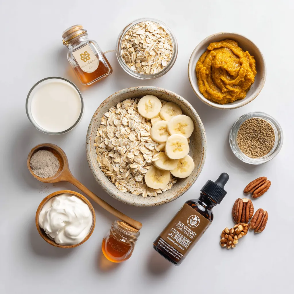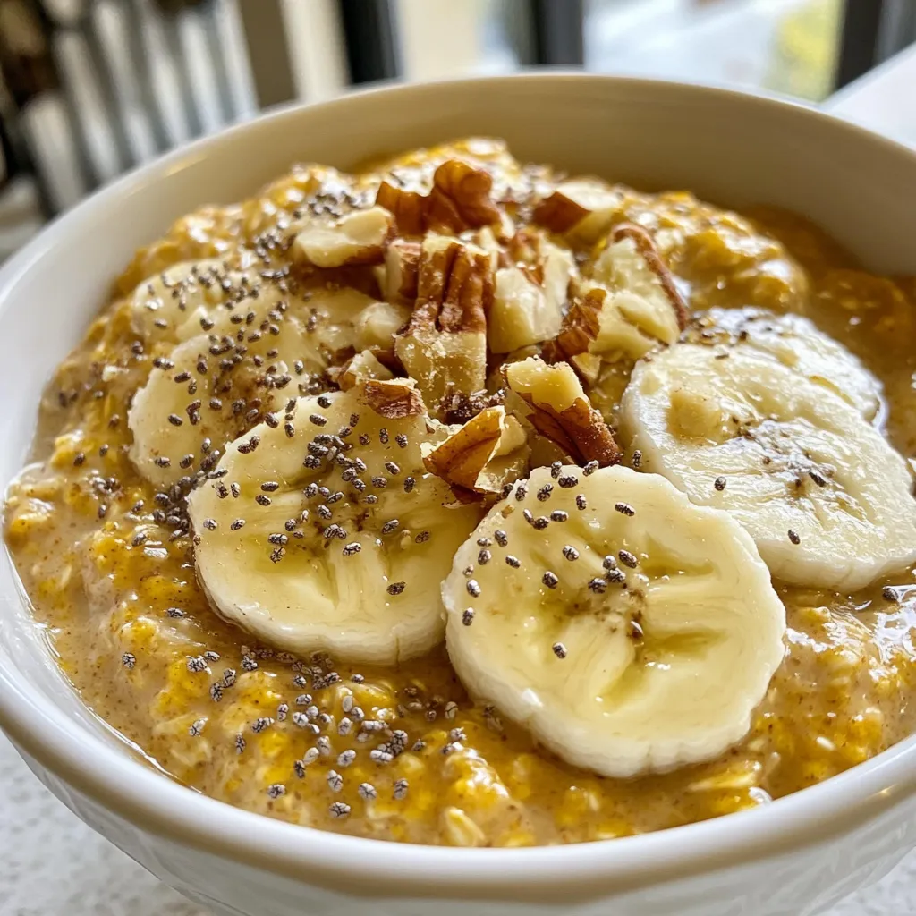 - 1 cup rolled oats - 1 cup almond milk (or your preferred milk) - 1/2 cup pure pumpkin puree - 1 tablespoon chia seeds - 2 tablespoons maple syrup - 1 teaspoon pumpkin pie spice - 1/2 teaspoon pure vanilla extract - A pinch of salt - Optional toppings: fresh banana slices, assorted chopped nuts, crunchy pecans, or a dollop of creamy Greek yogurt When measuring oats, use a dry measuring cup for accuracy. For liquids, a liquid measuring cup works best. Make sure to pack the pumpkin puree in the cup for even measurement. This ensures your oats maintain the right texture and flavor. If you don’t have almond milk, any milk works. Try oat, soy, or coconut milk. For maple syrup, honey or agave syrup can replace it. You can swap pumpkin puree with sweet potato puree for a different taste. If you want a nut-free option, skip the chia seeds or use flaxseeds instead. {{ingredient_image_2}} Start by gathering your tools and ingredients. You will need a medium mixing bowl and a whisk. Measure out 1 cup of rolled oats and 1 tablespoon of chia seeds. Add these to the mixing bowl. Stir them gently until they blend well. Set the bowl aside for now. In a separate bowl, combine 1 cup of almond milk and 1/2 cup of pure pumpkin puree. Then, add 2 tablespoons of maple syrup, 1 teaspoon of pumpkin pie spice, and 1/2 teaspoon of pure vanilla extract. Don't forget the pinch of salt! Whisk this mix until it is smooth and creamy. Pour your creamy mixture over the oats and chia seeds. Stir well so every oat gets soaked. Cover the bowl with plastic wrap or use an airtight container. Place it in the fridge for at least 4 hours, or best, overnight. This way, the oats will soak up all the yummy flavors. When you're ready to eat, stir again. If the oats seem thick, add a splash of almond milk. Now, it's time to serve with your favorite toppings! To get the best texture, use rolled oats. They soak up liquid well. You can add chia seeds for extra creaminess. When you mix the oats and liquid, stir well. This ensures every oat gets soaked. If your oats feel too thick, add more milk in the morning. This makes them creamy and smooth. You can change the flavor to fit your taste. If you want more sweetness, add honey or more maple syrup. For a spicier kick, add extra pumpkin pie spice. You can also mix in some nutmeg or cinnamon for warmth. Don’t forget, toppings like sliced bananas or nuts add flavor and crunch. Always cover your oats before chilling. This keeps them fresh and prevents drying out. Use an airtight container for best results. Let them sit overnight for great flavor. You can also prep them on Sunday for a quick breakfast during the week. This makes mornings easy and stress-free. Pro Tips Use Steel-Cut Oats: For a chewier texture, consider using steel-cut oats instead of rolled oats. Just remember to adjust the liquid and soaking time accordingly, as steel-cut oats will require more time to soften. Make it Vegan: To keep this recipe vegan-friendly, ensure that you use plant-based milk and opt for maple syrup instead of honey. Flavor Variations: Feel free to experiment with different spices like nutmeg or cinnamon, or even add a tablespoon of peanut butter for extra creaminess and flavor. Meal Prep Friendly: This recipe can be easily doubled or tripled for meal prep. Just store the prepared oats in individual containers for a quick grab-and-go breakfast throughout the week! {{image_4}} You can make pumpkin spice overnight oats dairy-free and vegan easily. Just use almond milk or any plant-based milk you like. You can also skip the Greek yogurt. Instead, add more fruits or nuts for creaminess. These swaps keep the taste great while meeting your dietary needs. Want to switch up the flavor? Try adding cocoa powder for a chocolate twist. You can also mix in some peanut butter for a nutty flavor. If you like spice, add cinnamon or nutmeg. These changes keep the recipe fun and interesting. Toppings can change with the seasons. In the fall, try adding sliced apples or pomegranate seeds. In winter, cranberries or walnuts add a nice crunch. Fresh berries in summer bring a bright flavor. Use whatever you have on hand to make your oats special. After you enjoy your pumpkin spice overnight oats, store any leftovers in an airtight container. This keeps them fresh and tasty. Place the container in the fridge. You can enjoy the oats for breakfast or a snack later. Pumpkin spice overnight oats stay good for up to five days in the fridge. After that, the taste and texture may change. Always check for any odd smells or colors before eating. You can freeze pumpkin spice overnight oats if you want to save some for later. Simply scoop portions into freezer-safe containers. Leave some space at the top, as the oats will expand when frozen. When ready to eat, thaw them in the fridge overnight. Then, stir and enjoy! Yes, you can use quick oats. They will absorb liquid faster. Quick oats make a softer texture. If you prefer a chewier bite, stick with rolled oats. Honey works great as a substitute. Agave syrup is another option. You can also use brown sugar. Just adjust the amount to taste. You can keep overnight oats for up to five days. Store them in an airtight container. The flavors will deepen over time, making each bite delicious. This blog post covers everything you need for making pumpkin spice overnight oats. We explored the key ingredients, measurement tips, and great substitutions. I shared step-by-step instructions for prepping, mixing, and chilling your oats. You learned essential tips for perfect texture and flavor. We also discussed storage options and answered common questions. With these insights, you can easily create a delicious and customizable breakfast. Enjoy the process and have fun experimenting with different flavors and toppings! Your mornings just got a tasty upgrade.