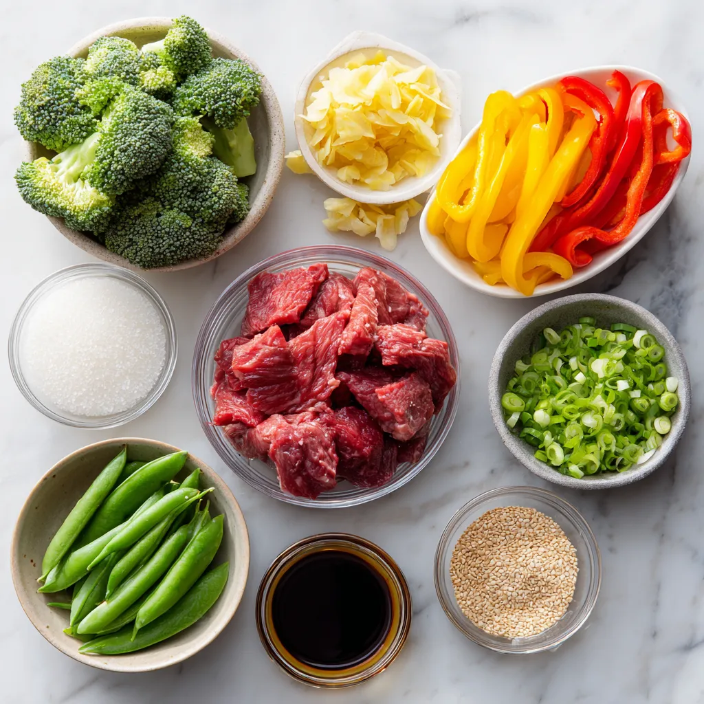 When I prepare a quick beef stir-fry, I start with fresh ingredients. The beef sirloin needs to be thinly sliced against the grain. This helps keep it tender. I love using colorful bell peppers. They add flavor and make the dish pop. Broccoli and snap peas are also great choices. They bring a nice crunch and bright color.