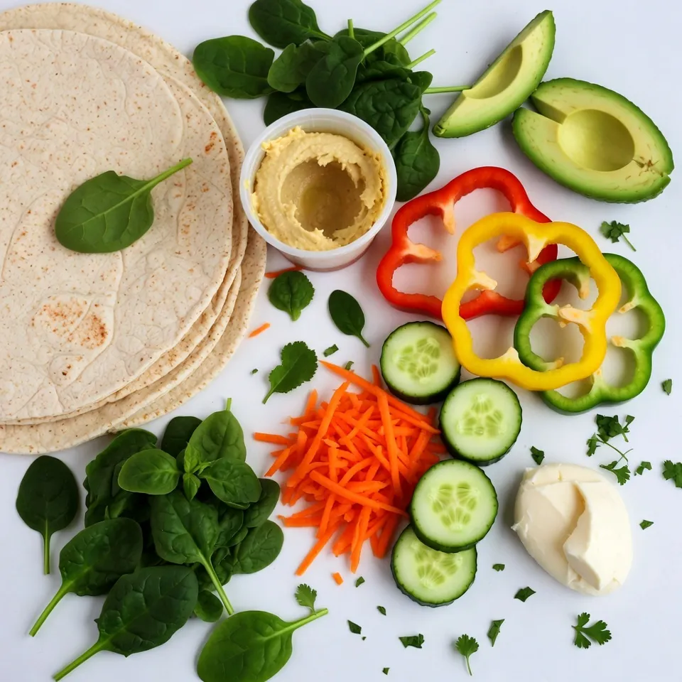 Pick fresh, bright vegetables for these wraps. The colors make the wraps fun and tasty. Look for crisp bell peppers, firm cucumbers, and vibrant carrots. Spinach should be dark green and not wilting. Choose ripe avocados that give slightly when pressed. This ensures a creamy texture in every bite. If you can, buy local and in season for the best flavor.