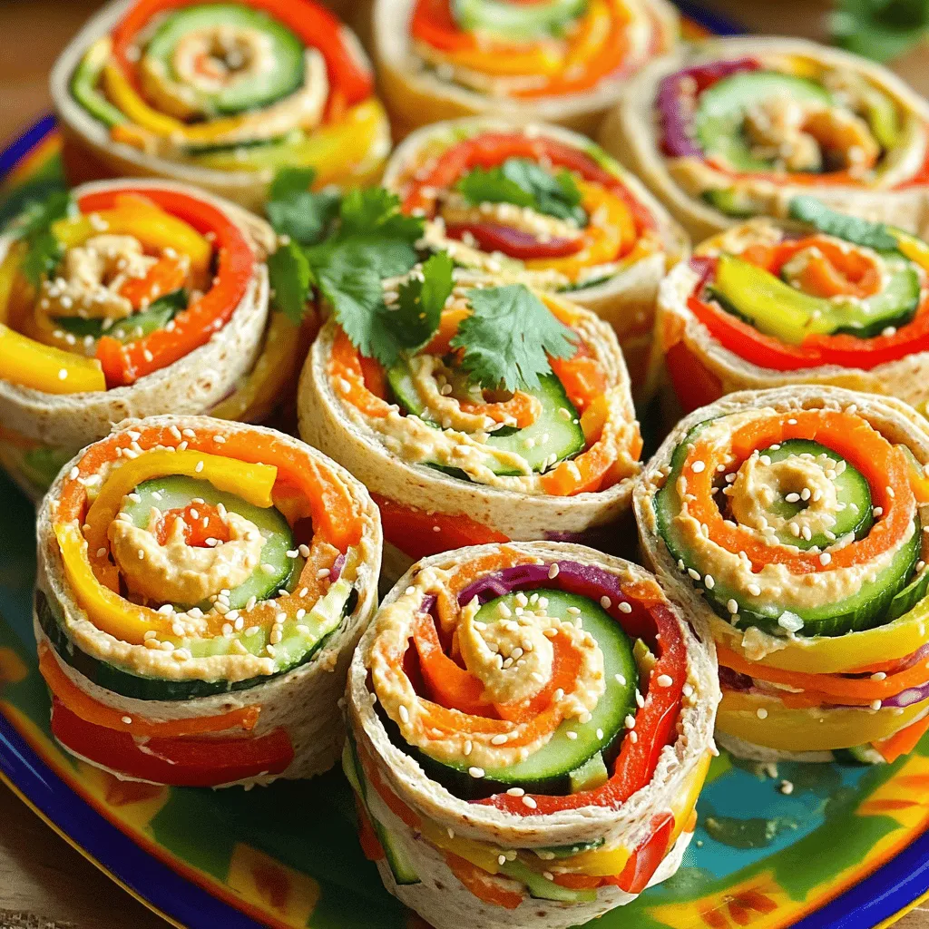 Arrange your pinwheels on a bright platter. This makes them look more appealing. Drizzle extra hummus on top for flair. You can also sprinkle sesame seeds for added crunch. Garnish with fresh herbs for a pop of color. Serve with a small bowl of hummus for dipping. Enjoy your vibrant, tasty snack!