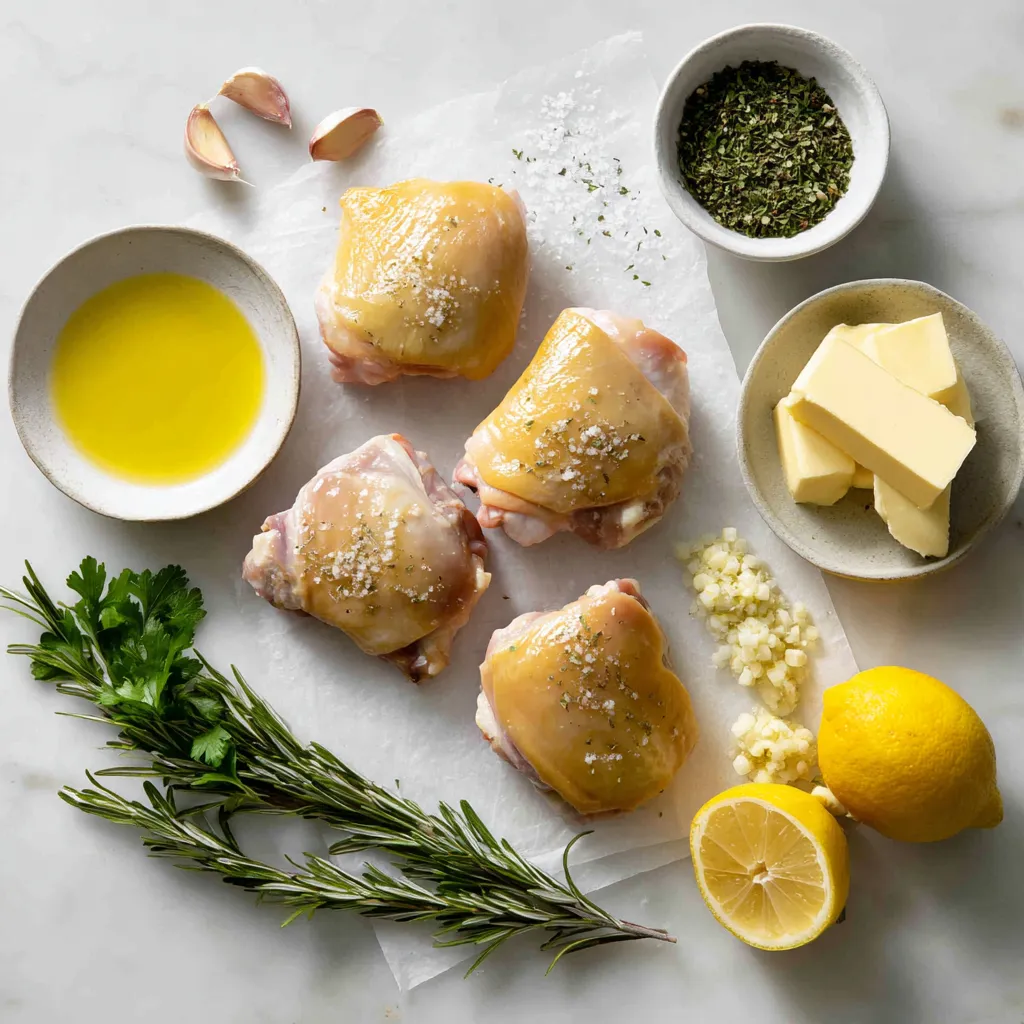 The main ingredients create a rich and savory flavor. Each one plays a vital role. The chicken thighs give a juicy bite. The unsalted butter adds creaminess. Minced garlic gives a strong aroma. Fresh rosemary brings a lovely herbal note. Olive oil helps with the searing process.
