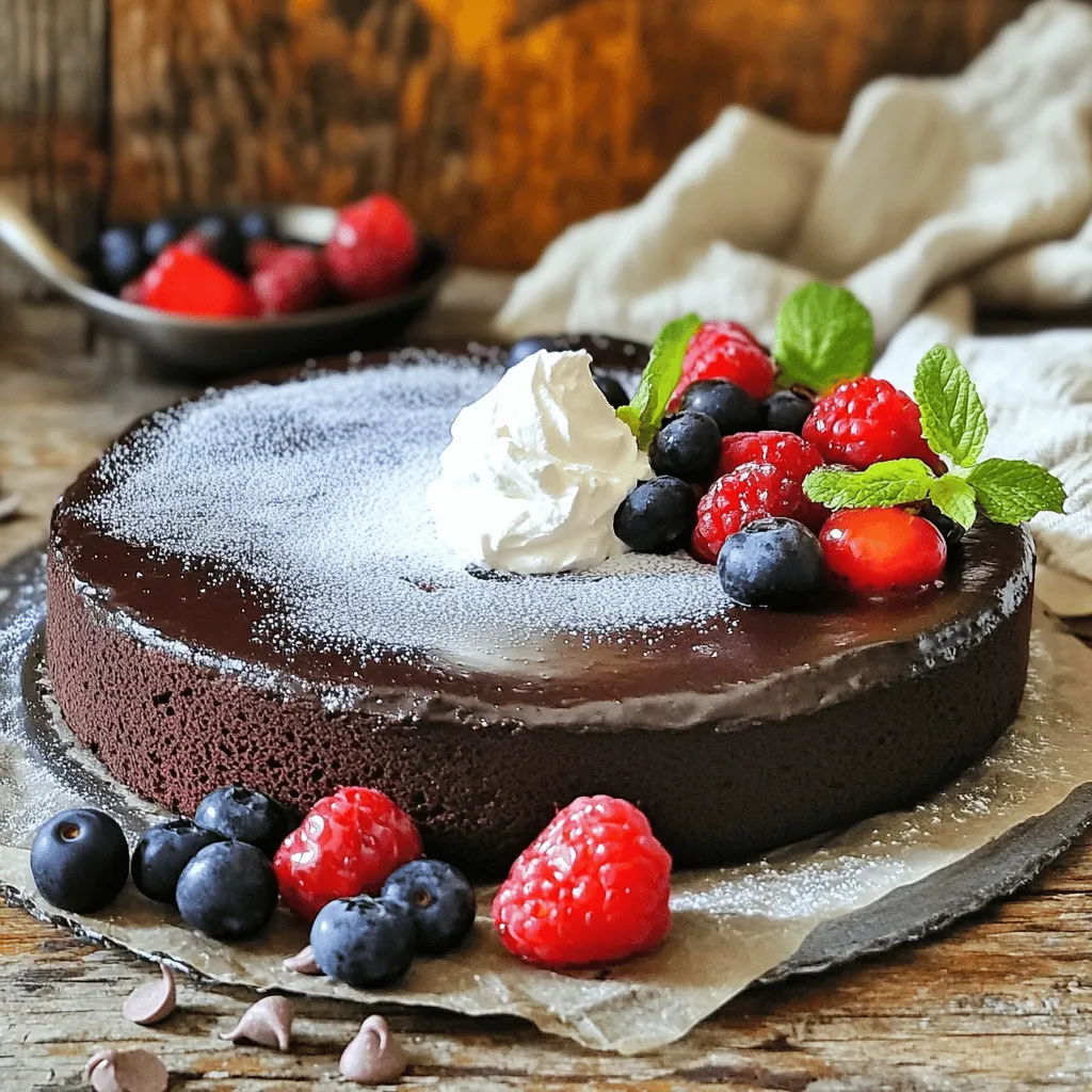 ![- 1 ½ cups all-purpose flour - 1 cup coconut sugar - ½ cup unsweetened cocoa powder - ½ cup dairy-free chocolate chips (optional) The main ingredients in this vegan chocolate cake make it rich and delightful. The all-purpose flour provides structure. Coconut sugar adds a slight caramel flavor, enhancing the cake's taste. Unsweetened cocoa powder gives the cake its deep chocolate flavor. If you want an extra treat, add dairy-free chocolate chips. They melt beautifully and create pockets of chocolatey goodness. - Plant-based milk options - Sugar substitutes for a healthier cake - Oil alternatives If you need a milk substitute, try almond, soy, or oat milk. Each brings its unique flavor but stays creamy. For sugar, you can use maple syrup or agave nectar. They add sweetness without refined sugar. If you want to cut back on oil, use applesauce or mashed bananas. These swaps keep the cake moist while lowering fat. Each alternative keeps your cake tasty while meeting your diet needs. For a detailed look at the full recipe, check out the Full Recipe section. Grease your cake pan with a thin layer of oil. You can also line it with parchment paper. This step helps the cake come out easily after baking. Next, preheat your oven to 350°F (175°C). Preheating ensures your cake bakes evenly and rises well. Start by sifting your dry ingredients together. This process breaks up clumps and helps mix them well. Use a whisk to combine the all-purpose flour, coconut sugar, cocoa powder, baking soda, and salt. If you see clumps in the cocoa powder, sift it again. It makes your cake smoother and more delicious. Use room temperature ingredients for the best results. Cold ingredients can cause the batter to be lumpy. In a bowl, mix the almond milk, vegetable oil, vanilla extract, and apple cider vinegar. The vinegar helps the cake rise and adds a nice texture. Whisk these ingredients until they blend well. Pour the wet mixture into the dry ingredients. Stir gently until just combined. Pour the batter into your prepared pan. Bake for 30 to 35 minutes. Check for doneness by inserting a toothpick in the center. It should come out clean or with a few moist crumbs. Let the cake cool for about 10 minutes in the pan, then transfer it to a wire rack. This cooling step helps the cake set and makes it easier to frost later. For the full recipe, you can refer to the complete instructions above. To get the best texture, avoid overmixing the batter. When you mix too much, the cake can turn out dense. Just mix until the dry and wet ingredients blend. This keeps the cake light and fluffy. The temperature of your ingredients matters too. Use room temperature milk and oil. Cold ingredients can slow down the rising process, making your cake less airy. Adding spices can take your cake to the next level. A pinch of cinnamon or a dash of espresso powder adds depth. You can also try vanilla extract or almond extract for a flavor boost. For a more indulgent cake, fold in dairy-free chocolate chips. They add richness and texture that you will love. When your cake is baked and cooled, it's time to make it pretty. Lightly dust the top with powdered sugar. You can also top it with fresh berries for a pop of color. For serving, consider a dollop of coconut whipped cream. This adds flavor and impresses your guests. For the full recipe, check out the link. Enjoy the process and the delightful results! {{image_4}} You can easily change the flavor of your vegan chocolate cake. Adding fruits or nuts can make it exciting. Try folding in chopped bananas, apples, or walnuts into the batter. These additions bring a new texture and taste. You can also use different types of cocoa powder. Dark cocoa gives a richer flavor, while raw cocoa offers a lighter taste. Experiment with both to see what you like best! This cake can fit many diets. If you need a gluten-free option, swap out all-purpose flour for almond or oat flour. Both work well and keep the cake moist. If you need nut-free alternatives, use rice milk or oat milk instead of almond milk. You can also use sunflower oil instead of vegetable oil to keep it nut-free. There are fun ways to serve this cake. You can layer cakes or make cupcakes for easy sharing. Layer cakes look great and taste amazing. You can also create mini vegan chocolate cakes for individual servings. These are perfect for parties or special events. Each person gets their own cake, making it a delightful treat! To keep your vegan chocolate cake fresh, place it in an airtight container. This helps lock in moisture and flavor. If you have leftover slices, separate them with parchment paper. This prevents them from sticking together. Store the cake at room temperature for up to three days. If you want to keep it longer, consider freezing it. To freeze the cake, wrap it tightly in plastic wrap. Then, place it in a freezer-safe bag. This helps avoid freezer burn. You can freeze the cake for up to three months. When you are ready to eat, thaw it in the fridge overnight. For best results, let it come to room temperature before serving. Enjoy the same great taste and texture as the day you made it! Yes, you can! Here are some good substitutes for all-purpose flour: - Whole wheat flour - Almond flour - Oat flour - Gluten-free flour blend Each option will change the texture and taste. Whole wheat flour adds a nutty flavor. Almond flour makes the cake moist. Oat flour gives a soft texture. Gluten-free blends work well for those with gluten issues. Always check the ratio for the best results. Yes, vinegar plays a key role in vegan baking. It helps the cake rise and stay light. When mixed with baking soda, it creates a reaction that makes the cake fluffy. If you skip the vinegar, the cake may turn out dense. Apple cider vinegar is the best choice for this recipe. You can easily boost the chocolate flavor! Here are some options: - Add an extra ¼ cup of unsweetened cocoa powder to the batter. - Drizzle chocolate ganache on top after b
