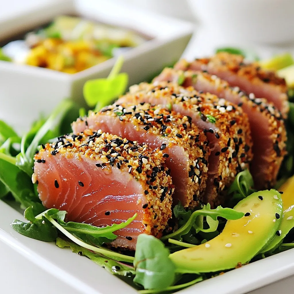 - Texture Contrast: The crunchy sesame crust paired with the tender tuna creates a delightful contrast that enhances the eating experience.