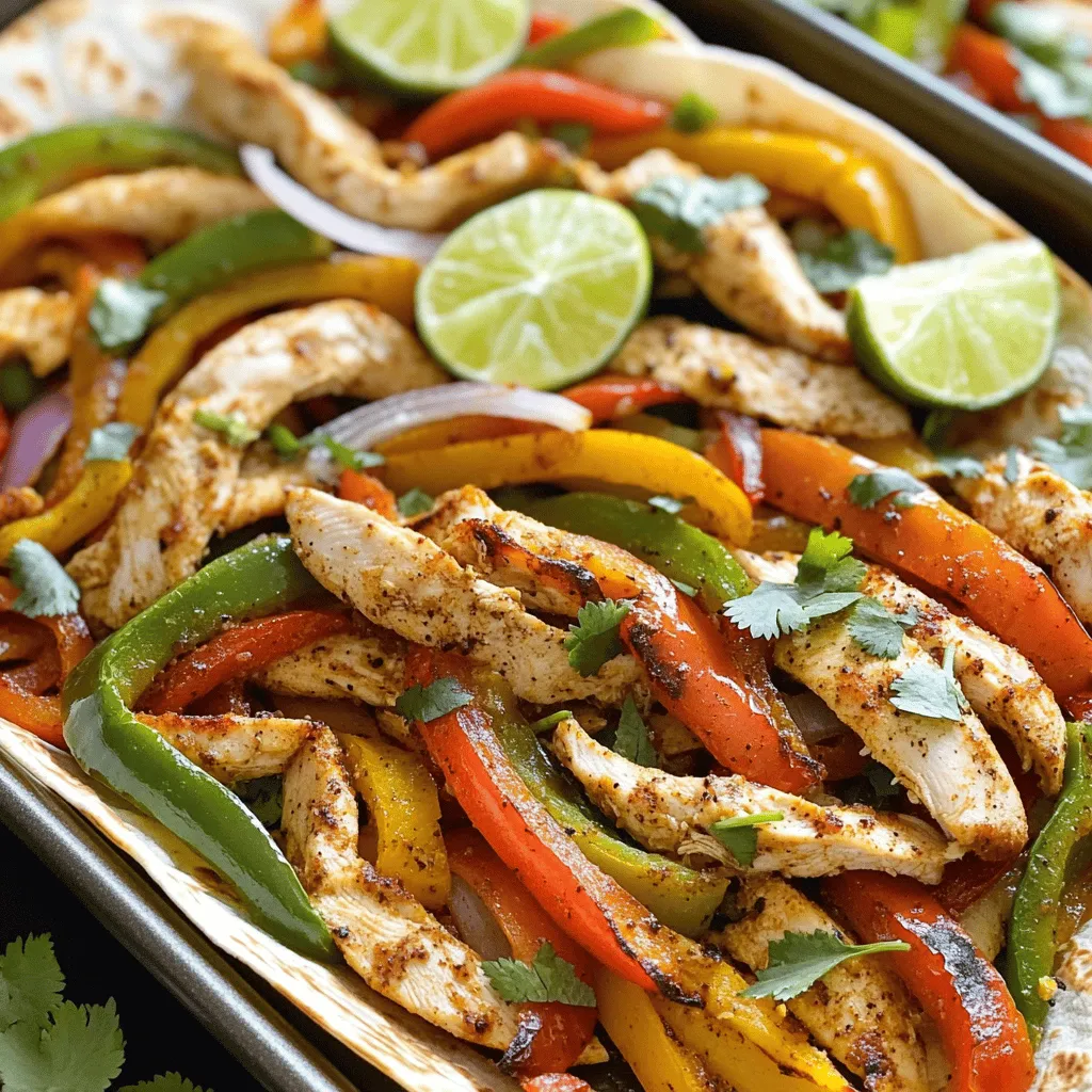 ![- 1 lb boneless, skinless chicken breasts - 2 bell peppers (red and green) - 1 medium yellow onion - Olive oil and spices The main ingredients are simple yet flavorful. I use boneless, skinless chicken breasts because they cook evenly. Bell peppers add color and sweetness, while the onion provides a tasty base. Olive oil helps the spices stick and adds richness. - Chili powder - Ground cumin - Garlic powder - Smoked paprika - Onion powder The seasoning blend makes this dish special. Chili powder gives a nice kick. Ground cumin adds warmth, while garlic and onion powders boost the flavor. Smoked paprika brings depth with its smoky taste. - Flour tortillas - Fresh cilantro - Lime wedges for serving To enjoy the fajitas, I use small flour tortillas that hold the filling well. Fresh cilantro adds a bright touch, and lime wedges bring a zesty finish. These extras make the meal even better. For the full recipe, check out the [Full Recipe]. - Set the oven to 425°F (220°C). - Line a sheet pan with parchment paper. - In a bowl, whisk together olive oil and spices. - Coat the chicken with the marinade well. - Add the sliced bell peppers and onion to the chicken. - Spread the mixture evenly across the sheet pan. - Bake for 20-25 minutes, stirring halfway through. This recipe makes it easy to prepare a tasty meal. You can enjoy it with warm tortillas. For the full recipe, check out the details provided earlier. To make the best sheet pan chicken fajitas, marinate the chicken longer if you can. Letting it soak in flavors for more time makes a big difference. A meat thermometer is also very handy. It helps you check if your chicken is fully cooked. Aim for 165°F (74°C) for safety. A fajita bar is a fun way to serve these. Lay out all the toppings for everyone to enjoy. Think about adding sour cream, salsa, or guacamole. To warm the tortillas, heat them in a dry skillet for about 30 seconds on each side. You can also wrap them in foil and place them in the oven for the last five minutes of cooking. Make your presentation pop with colorful toppings. Fresh avocado, diced tomatoes, and shredded cheese can make your dish look great. Don't forget to garnish with lime wedges and cilantro. These small touches bring out the flavors and make the dish more inviting. Enjoy the full recipe for more details on how to create this tasty meal! {{image_4}} You can switch the chicken for shrimp or tofu. Shrimp cooks fast and adds a nice flavor. Tofu is great for a plant-based option. If you want to use chicken, try different cuts like thighs. Thighs are juicy and full of flavor. If you want a meatless meal, replace chicken with mixed vegetables. Bell peppers, zucchini, and corn work well. Add beans for protein. Black beans or pinto beans add creaminess and taste. This keeps your meal hearty and filling. Want to spice things up? Add jalapeños for heat. They bring a nice kick that many love. You can also mix in different herbs and spices. Try oregano, cilantro, or smoked paprika for variety. Each adds unique flavors to your dish. Explore these options to find your favorite twist on this recipe! For the full recipe, check the link. After you enjoy your sheet pan chicken fajitas, store any leftovers in an airtight container. This keeps the flavors fresh. You can refrigerate them for up to 3 days. Make sure to let them cool before sealing to avoid steam buildup. To freeze the fajita mix, place it in a freezer-safe bag or container. Remove as much air as possible to prevent freezer burn. You can keep it frozen for up to 3 months. For thawing, move it to the fridge overnight. If you're in a hurry, use the microwave's defrost setting. To reheat without drying out your fajitas, use the oven. Preheat it to 350°F (175°C) and warm the fajitas in a covered dish for about 10-15 minutes. You can also use a skillet over low heat, adding a splash of water to create steam. This keeps everything juicy. Get creative with leftovers! Use them in tacos, wraps, or salads for a quick meal. You can even mix them into scrambled eggs for a tasty breakfast. For the full recipe, check it out above. Yes, you can use frozen chicken for this recipe. Just follow these guidelines: - Thawing: Always thaw the chicken before marinating. You can do this overnight in the fridge or use the microwave's defrost setting. - Cooking Time: If you skip thawing and bake from frozen, increase the cooking time by 5-10 minutes. - Check Doneness: Use a meat thermometer to ensure the chicken reaches 165°F (74°C). There are many tasty sides to pair with your fajitas. Here are some great options: - Rice: Cilantro lime rice adds a fresh touch. - Beans: Black beans or refried beans are both hearty and flavorful. - Salad: A simple green salad with lime vinaigrette complements the fajitas well. - Chips and Salsa: Serve with tortilla chips and your favorite salsa for a crunchy side. Want extra heat? Here are some tips to spice up your fajitas: - Add Jalapeños: Sliced fresh jalapeños can give a nice kick. - Use Hot Sauce: Drizzle your favorite hot sauce over the fajitas before serving. - Increase Spice Mix: Add more chili powder or a pinch of cayenne pepper to the marinade for more heat. For the complete recipe, check the Full Recipe section. In this blog post, we covered a tasty sheet pan chicken fajitas recipe. You learned about the key ingredients and how to prepare them. I shared tips to make your fajitas perfect, including variations for different diets. Storing leftovers and reheating them properly helps reduce waste. Remember, these fajitas are easy to customize and fun to serve. Enjoy making them with family or friends, and let your creativity shine. Your next meal can be delicious and simple!](https://joymealplan.com/wp-content/uploads/2025/06/bce38261-6b1a-4600-b2d8-c9c563997242.webp)