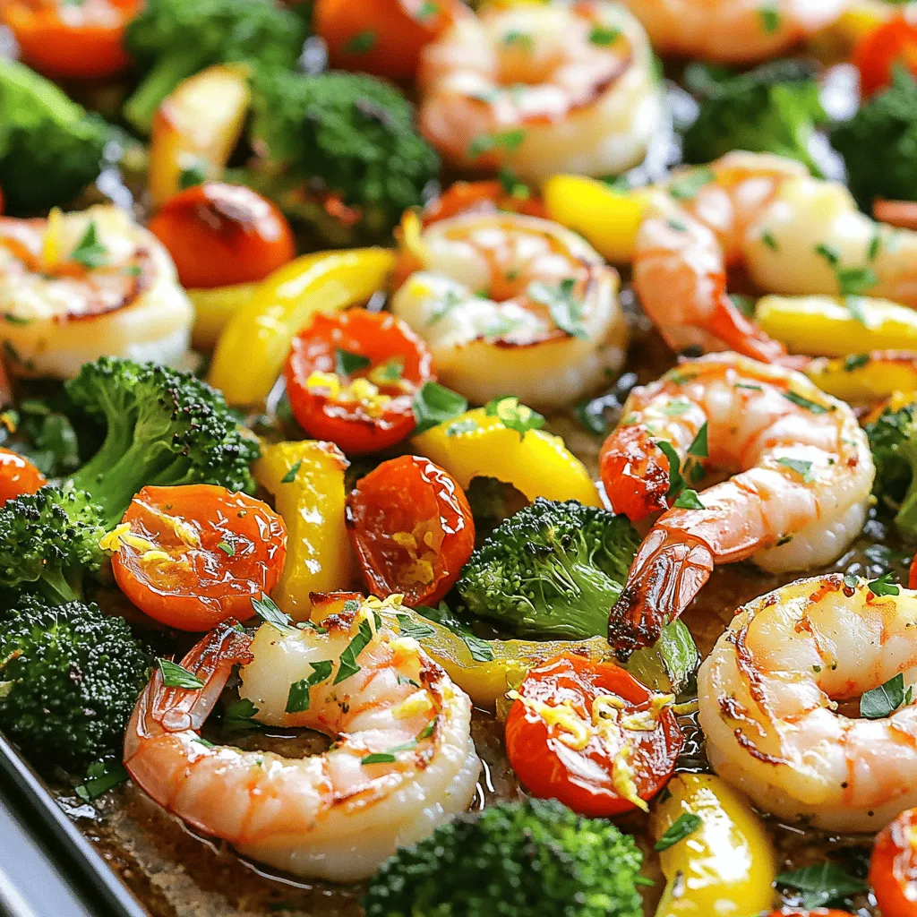 ![- 1 pound large shrimp, peeled and deveined - 2 cups broccoli florets - 1 cup cherry tomatoes, halved - 1 medium yellow bell pepper, sliced into strips - 3 tablespoons extra virgin olive oil - 4 cloves garlic, finely minced - Zest and juice of 1 large lemon - 1 teaspoon dried oregano - 1 teaspoon dried thyme - Salt and freshly cracked black pepper to taste - Fresh parsley for garnish The main ingredients in this recipe create a bright, fresh dish. The shrimp are the star. Their sweet flavor pairs well with the crunchy broccoli and juicy tomatoes. The yellow bell pepper adds color and sweetness. For the drizzle, I love using olive oil. It adds richness and helps the garlic blend well with the other flavors. The lemon brings a zesty kick. Its zest adds a fragrant aroma, while the juice brightens the dish. Dried oregano and thyme lend an earthy note. They balance the freshness of the lemon and shrimp. Finally, salt and pepper bring out all the flavors. Fresh parsley adds a splash of color and a hint of freshness when you serve. You can find the full recipe here: [Full Recipe]. Enjoy cooking! 1. First, preheat your oven to 400°F (200°C). 2. Line a large baking sheet with parchment paper. This makes cleanup simple. 3. In a big bowl, mix 1 pound of shrimp, 2 cups of broccoli, 1 cup of halved cherry tomatoes, and 1 sliced yellow bell pepper. Toss them gently to combine. 1. In a small bowl, whisk together 3 tablespoons of olive oil, 4 minced garlic cloves, the zest of 1 lemon, and its juice. 2. Then, add 1 teaspoon each of dried oregano and thyme, plus salt and pepper. Mix it well. 1. Pour the lemon herb mix over the shrimp and veggies. Toss everything together to coat well. 2. Spread the mixture evenly on the baking sheet. 3. Place it in the oven and bake for about 12-15 minutes. The shrimp should turn pink, and the veggies should soften. 4. After baking, sprinkle chopped parsley on top for a fresh look and taste. This recipe is quick and makes a colorful dish that bursts with flavor. For the full recipe, check the details above. To know when shrimp are done, look for a bright pink color. They should also be opaque. If you see these signs, they are ready to eat. Cooking time may change with different ovens. Start checking for doneness at around 12 minutes. Your oven may cook faster or slower, so keep an eye on them. Adding more flavors can make this dish even better. You might try a pinch of red pepper flakes for some heat. A dash of smoked paprika adds a nice smoky taste. Fresh herbs are key in this dish. They give a bright and fresh flavor that dried herbs can't match. Always use fresh parsley for a vibrant finish. You can serve the shrimp right from the baking sheet. This gives a fun, casual feel. If you want to impress, transfer them to a nice platter. Drizzle with extra lemon juice for zing. Pair this dish with a light salad or some rice to soak up the juices. These sides complement the shrimp beautifully. For the full recipe, check out the details above. {{image_4}} You can use many vegetables in this dish. Instead of broccoli and bell peppers, try zucchini or asparagus. These options add color and flavor. You can also use seasonal veggies. In summer, fresh corn or green beans work well. In fall, add butternut squash or Brussels sprouts. Mix and match to suit your taste. If you want to change the protein, scallops or chicken are great swaps. Scallops cook fast like shrimp. They need about 8-10 minutes in the oven. Chicken takes longer, around 20-25 minutes. Cut it into small pieces for even cooking. Adjust your bake time based on the protein you choose. This recipe is easy to adapt for different diets. For a gluten-free option, make sure your seasonings are gluten-free. You can also make it dairy-free. Just skip any dairy-based sides. Want a vegan version? Use chickpeas or tofu instead of shrimp. Season them the same way for a delicious meal. Store leftover shrimp and veggies in an airtight container. Keep it in the fridge for up to two days. If you want to save some for later, freezing is a good option. Place shrimp and vegetables in a freezer-safe bag. Remove as much air as you can before sealing. They can last up to three months in the freezer. When reheating, use the oven or stovetop for best results. Preheat your oven to 350°F (175°C) and place the shrimp and veggies on a baking sheet. Heat for about 10 minutes. This keeps everything warm and tasty. You can also use a skillet on low heat. Stir gently to warm the dish without overcooking the shrimp. Avoid the microwave if possible, as it can make shrimp tough. For the full recipe of Sheet Pan Lemon Herb Shrimp, check the earlier section! Shrimp cook quickly. The best time is 12 to 15 minutes at 400°F. They turn pink and opaque when done. Overcooking makes them tough, so watch closely. Each oven is different, so check them a little early. Yes, you can prep this dish in advance. Mix the shrimp and veggies, then store them in the fridge. You can also make the marinade ahead. Just keep the shrimp and marinade separate until you are ready to bake. This keeps the shrimp fresh. This shrimp pairs well with many sides. Here are some great options: - Quinoa salad for a healthy touch - Garlic bread for a filling option - Steamed rice for a classic choice - A fresh garden salad for crunch These sides balance the flavors and make a complete meal. In this post, I shared how to make a delicious sheet pan lemon herb shrimp dish. We covered main ingredients, step-by-step instructions, and tips for perfecting the recipe. I also included variations based on your taste. Cooking should be fun and easy. With quick steps and fresh ingredients, you can create a meal everyone will love. Enjoy experimenting with flavors and make this recipe your own!](https://joymealplan.com/wp-content/uploads/2025/06/8195c318-04ef-4784-9bf9-d5c1a8395797.webp)