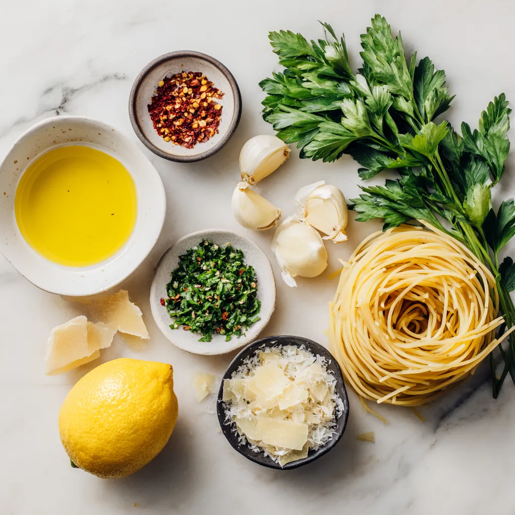 Keyword garlic, lemon, olive oil, parsley, spaghetti