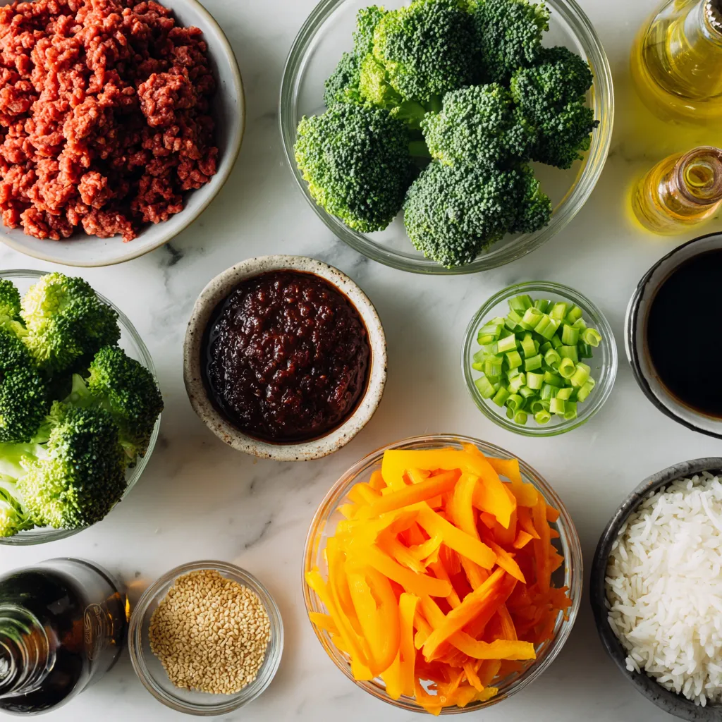In this recipe, the combination of flavors is key. The main ingredient is ground beef, which brings rich taste and texture. Gochujang, a spicy Korean chili paste, adds heat and depth. Soy sauce gives a savory element, while sesame oil and brown sugar balance the flavors perfectly.