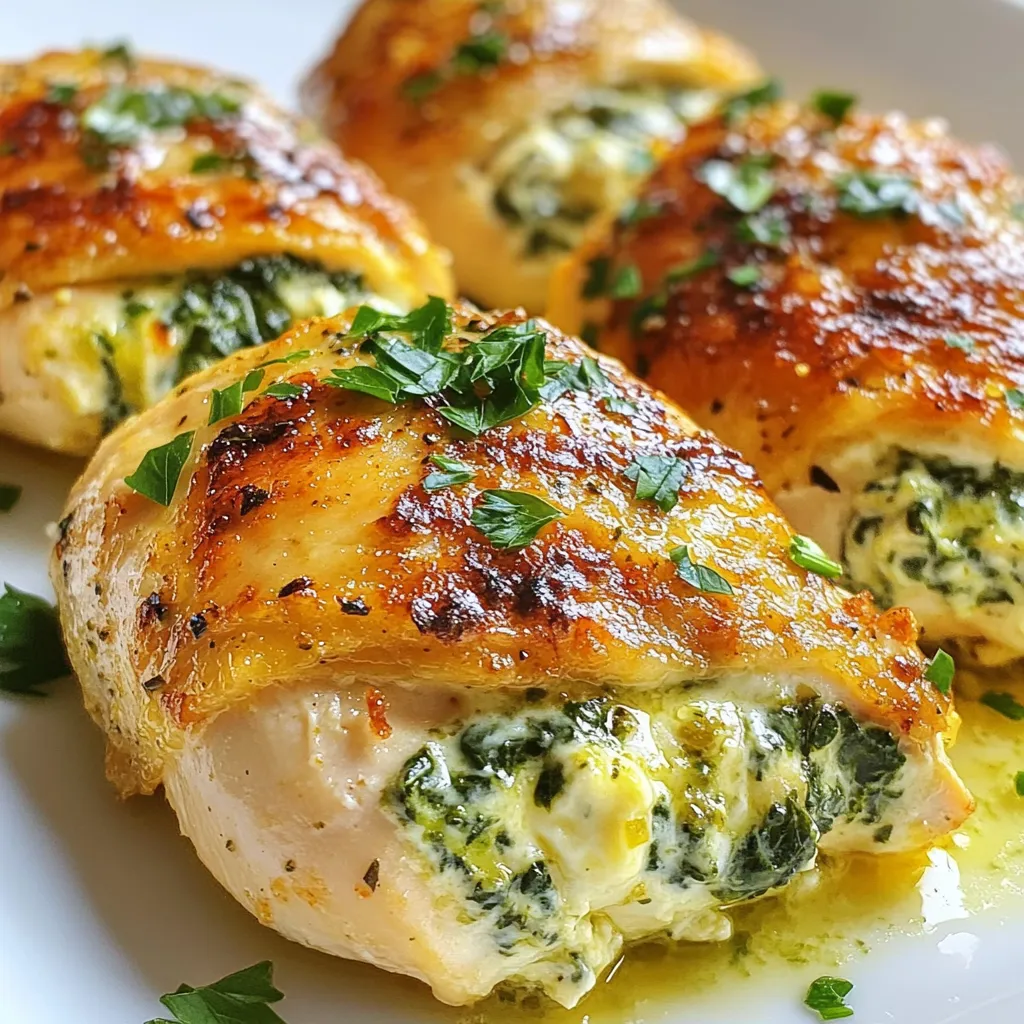 For a vegetarian option, swap out the chicken for large portobello mushrooms. Remove the stems and gills, then stuff them with the spinach and cheese mixture. Bake them until tender.