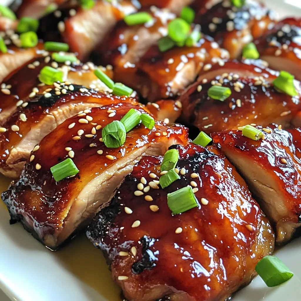 - Slice the rested chicken thighs into elegant strips. Arrange them attractively on a serving platter, garnishing with sliced green onions and a sprinkling of sesame seeds for a delightful crunch and color.
