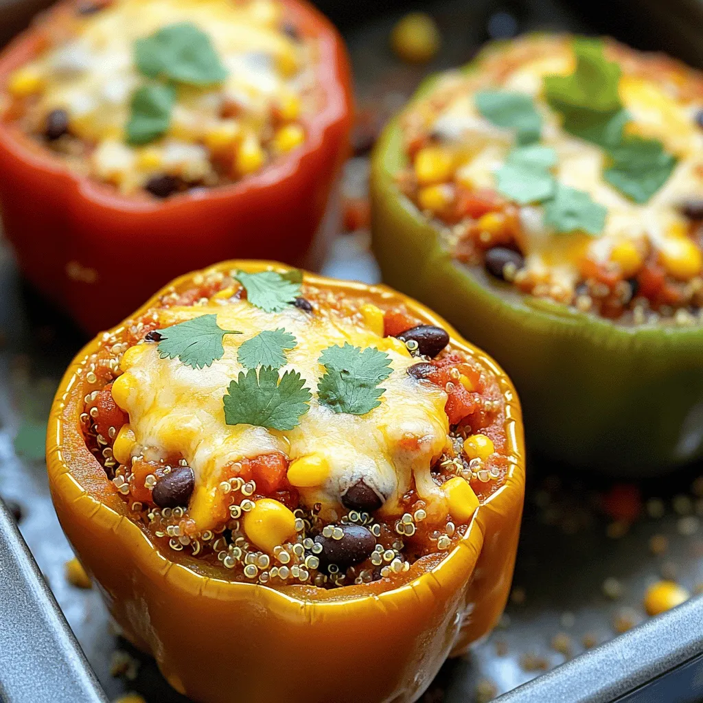 Each ingredient adds a unique flavor. The bell peppers give a sweet crunch. Quinoa provides a nutty base and protein. Black beans add creaminess, while corn offers sweetness and color. The spices bring warmth and depth. Don’t forget the cheese! It adds richness and a gooey finish.This combination is a surefire way to create a satisfying meal.
