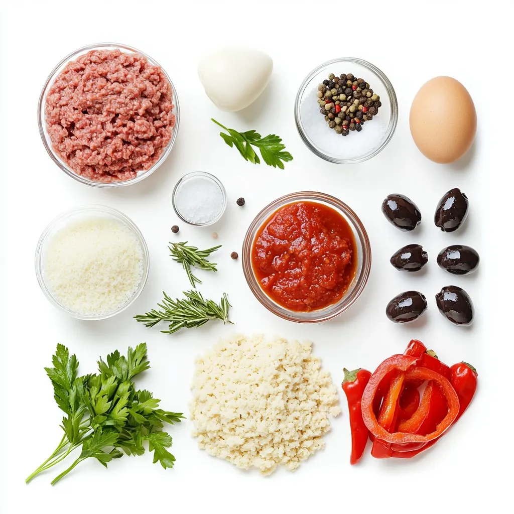 For the filling, marinara sauce is key. It adds moisture and flavor inside the meatloaf. Shredded mozzarella cheese melts beautifully, creating a gooey center. Roasted red peppers add a sweet, smoky taste. Lastly, sliced black olives bring a briny note that balances the dish.