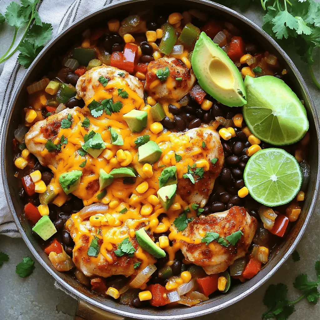 Serving your Tex-Mex Chicken Skillet well can make it even more appealing. Spoon it into bowls, and add ripe avocado slices on top. This adds creaminess and color. Squeeze fresh lime juice over the dish for a zesty finish. You can sprinkle chopped fresh cilantro on top for a pop of green. The bright colors make your meal look as good as it tastes!