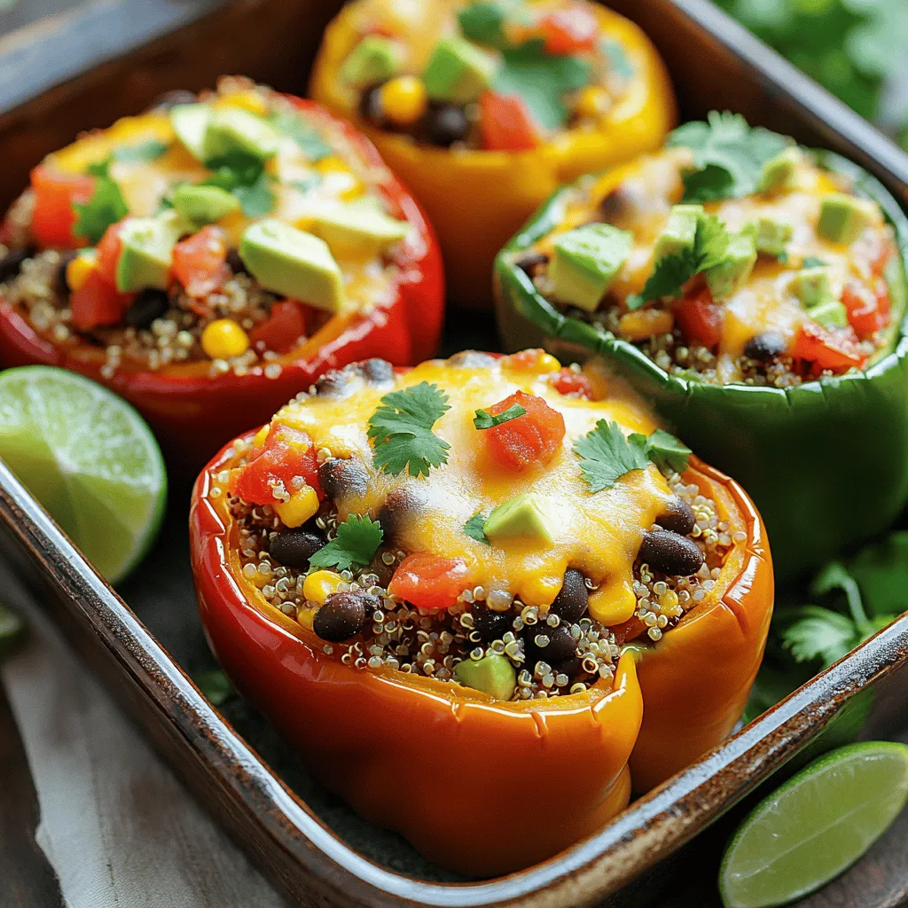 The main ingredients for this dish create a wonderful mix of flavors. You can pick any color of bell pepper. I love using red or yellow for added sweetness. Quinoa is a great choice because it is high in protein and gluten-free. The black beans add fiber and heartiness. Corn brings a nice crunch, while diced tomatoes add moisture.