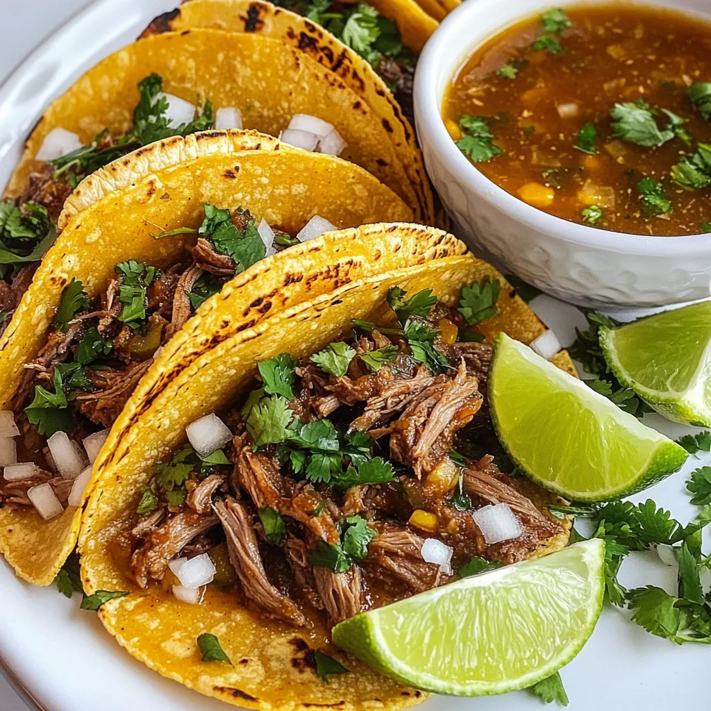 – Presentation tips for serving: Use a colorful platter to display your tacos. Include a bowl of the rich broth for dipping. Scatter lime wedges and garnishes around for a vibrant look. This makes your dish pop and taste even better!